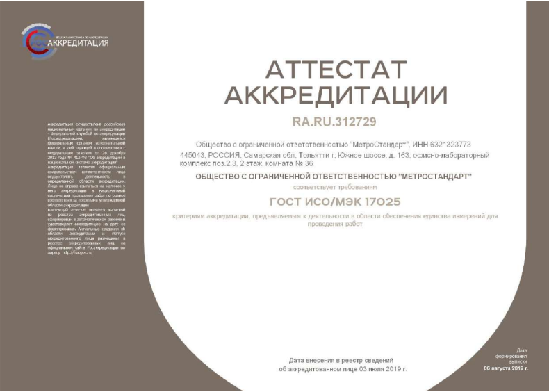 МетроСтандарт — официально аккредитованная компания, а это значит, что мы соблюдаем все требования ФЗ «Об обеспечении единства измерений» и работаем в рамках закона РФ.